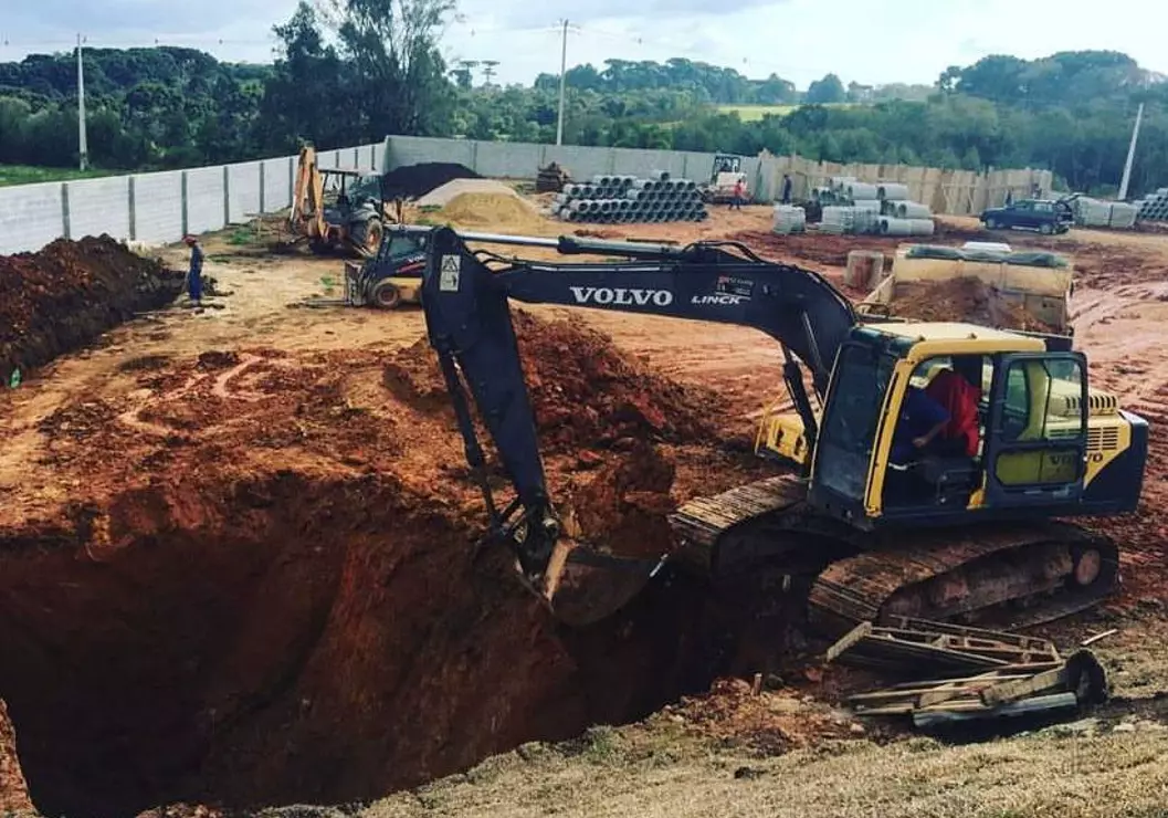 Locação de equipamentos, demolição, escavação, pavimentação, sistema de drenagem e esgoto...